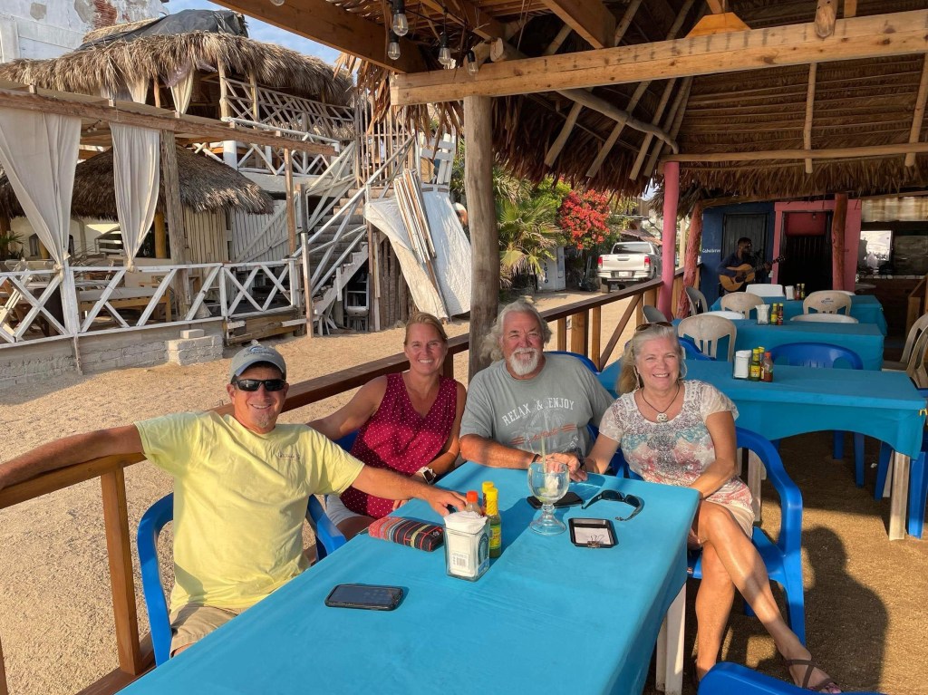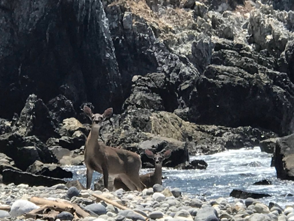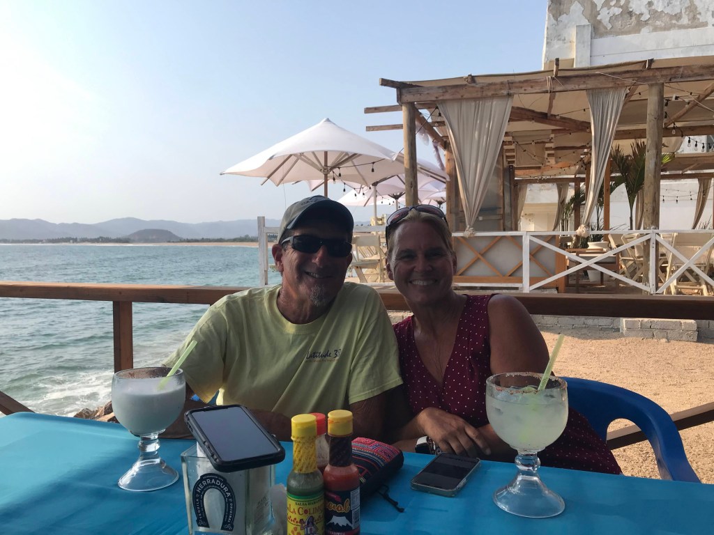 We had a nice visit from Sean in April, He flew into Manzanillo and spent a couple weeks hanging out with us before we head into the marina for the summer. We anchored in Tennicatita for a few days. Enabling us to cruise up the estuary to visit Pancho at the Distillery. Seans request. Always a great day, running the dinghy up the river to have lunch and Raicella, the Mezcal from the region. From Tennicatita we sail down to Las Hades with a stop in the remote anchorage , Bahia de Carrizales. One of the only completely isolated anchorages in this part of the coast. Many times we are the only boat in the bay. After a hike we hung out in a makeshift palapa on the beach having a beer and chatting. Thats when we had a visit from a family of mule deer. Thats a first for us in Mexico. They came down to the beach to graze but were more interested in checking us out. From there we motored down to Las Hades, about 5 miles south of Carrizalles. The red tide was so bad at times we had to go out to find clear enough water to run the water maker and not clog filters. From Las Hades we made a short road trip to the outdoor market in Manzanillo to provision. A huge selection of everything you could imagine. Sean flew back to the states to start his Job in Washington state as a wild land firefighter and we will start our way north to put Namahana in Paradise Village Marina for hurricane season.