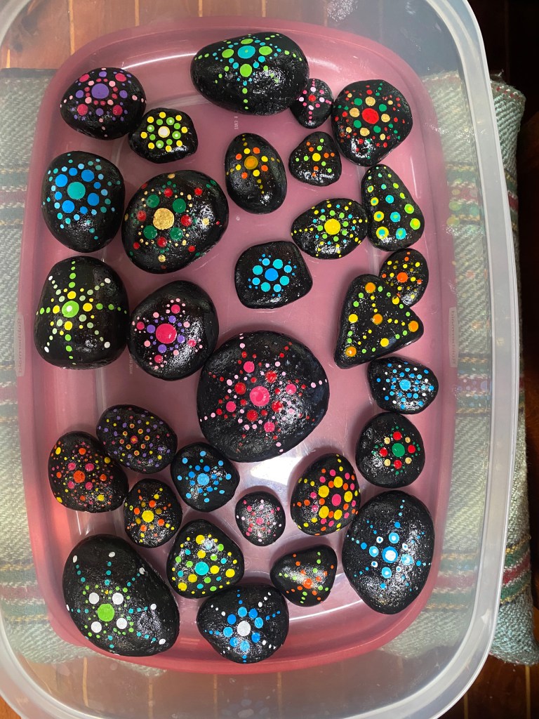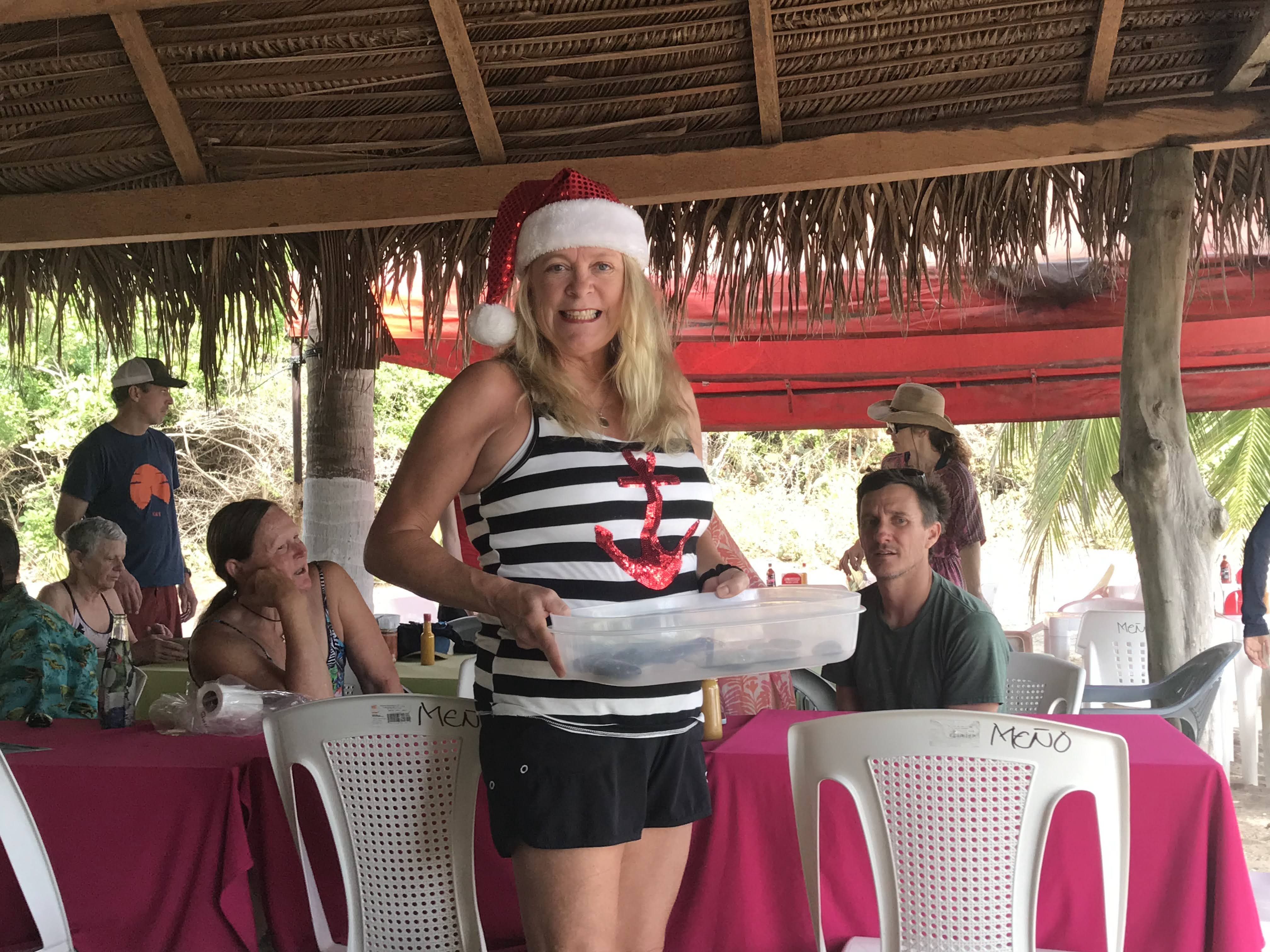 After the kids went home we headed back to Tennacatita for a couple weeks, celebrating Christmas at the La Vena palapa on the beach with 70 other cruisers, yes 70. There were 40 plus boats in the anchorage, and a lot of kid boats. The party was fun and Jill got to pass out rocks she painted for all the boats.