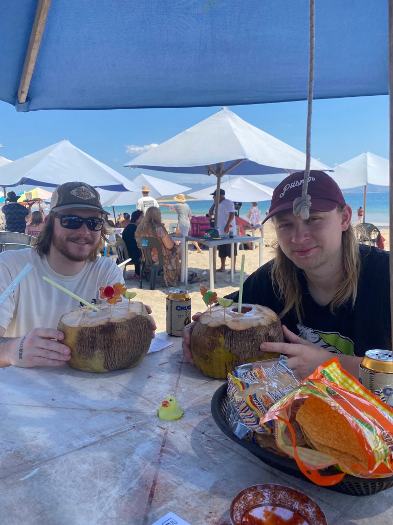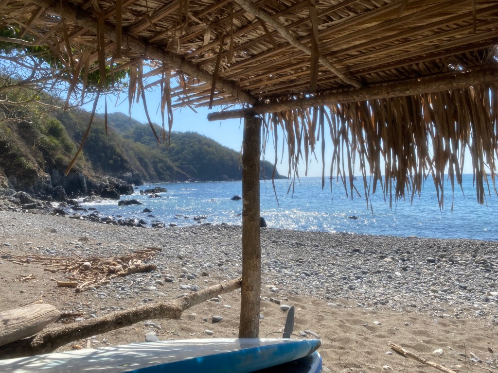 We did an overnight sail south to Isla Grande. Isla Grande is a small island about 10 miles north of Zihua, busy with local tourists until the sun goes down. There is no electricity on the island so at sunset all is quiet. Our friend Juan has a great restaurant there “Pareiso”. He is also the best DJ on the island. We enjoyed a couple days of semi tranquility before heading down to Guitar Fest. Liz and Risto off Silver Wings joined us for the day on the beach.
