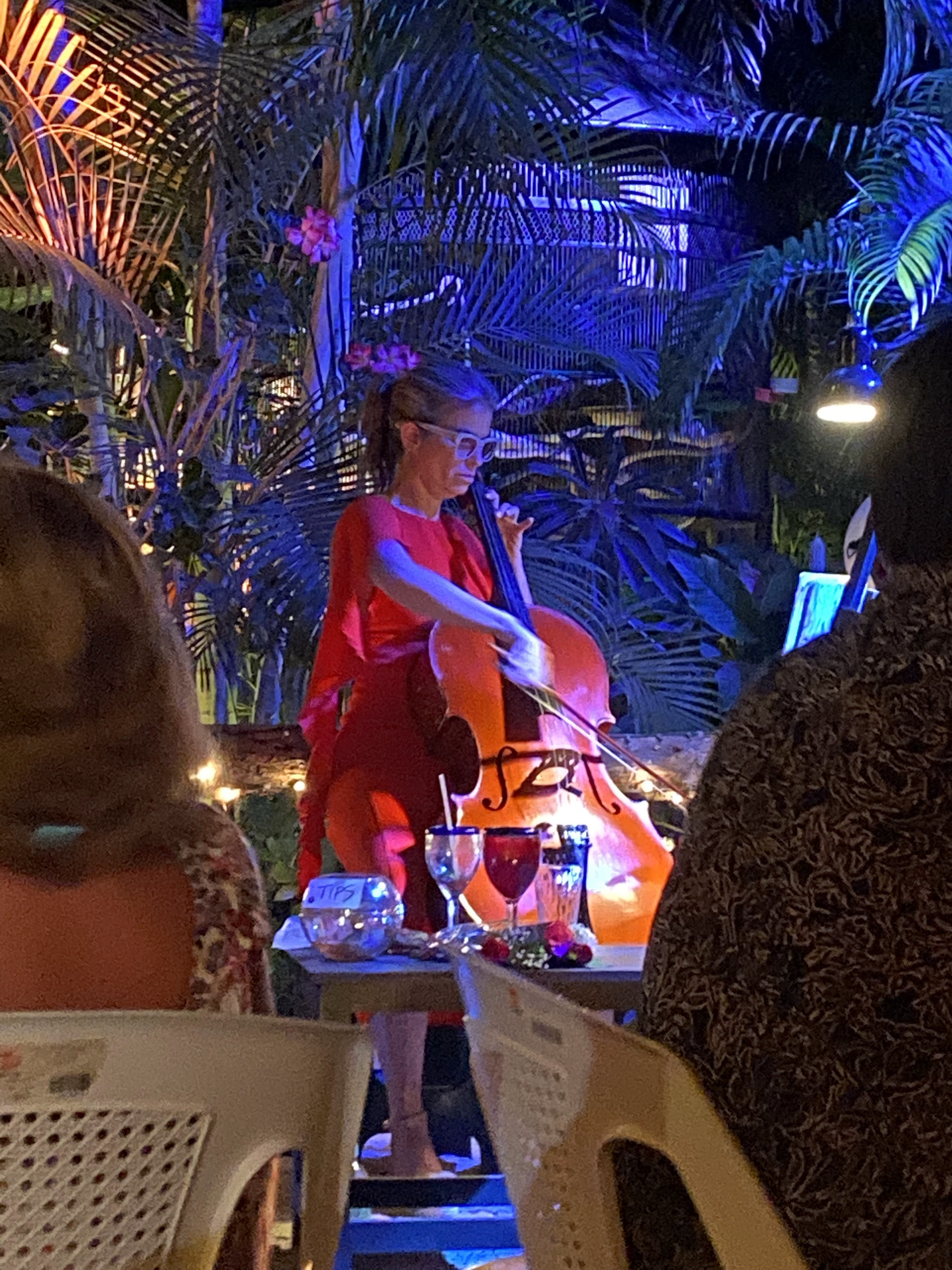 We spent January and most of February bouncing between Las Hades and Tenacatita. Basing out of Barra de Navidad. Some of our favorite anchorages lie in that 30 mile stretch of the Pacific coastline. Carrizal, Santiago, and Las Hades to the south of Barra and Tenacatita 10 miles to the North. The Mexican Gold Coast is how Bob Bitchin described this part of the coast to me back in the 90s when we first started dreaming of cruising. We celebrated Jills birthday and our 31st anniversary in Barra de Navidad .Valentine’s Day (also our anniversary) we were lucky to get a table at Galeria de Arte (the Art Gallery). Good food and a cool atmosphere, and always sold out that night. Our friend Amy was the entertainment that night, playing her cello. What a treat that was.