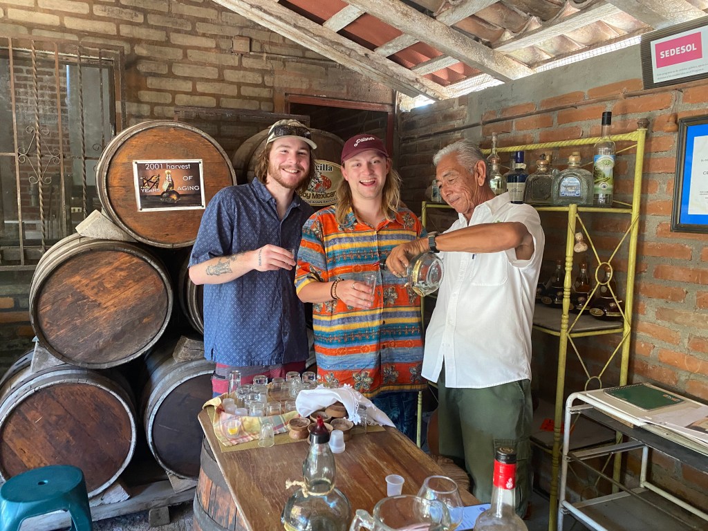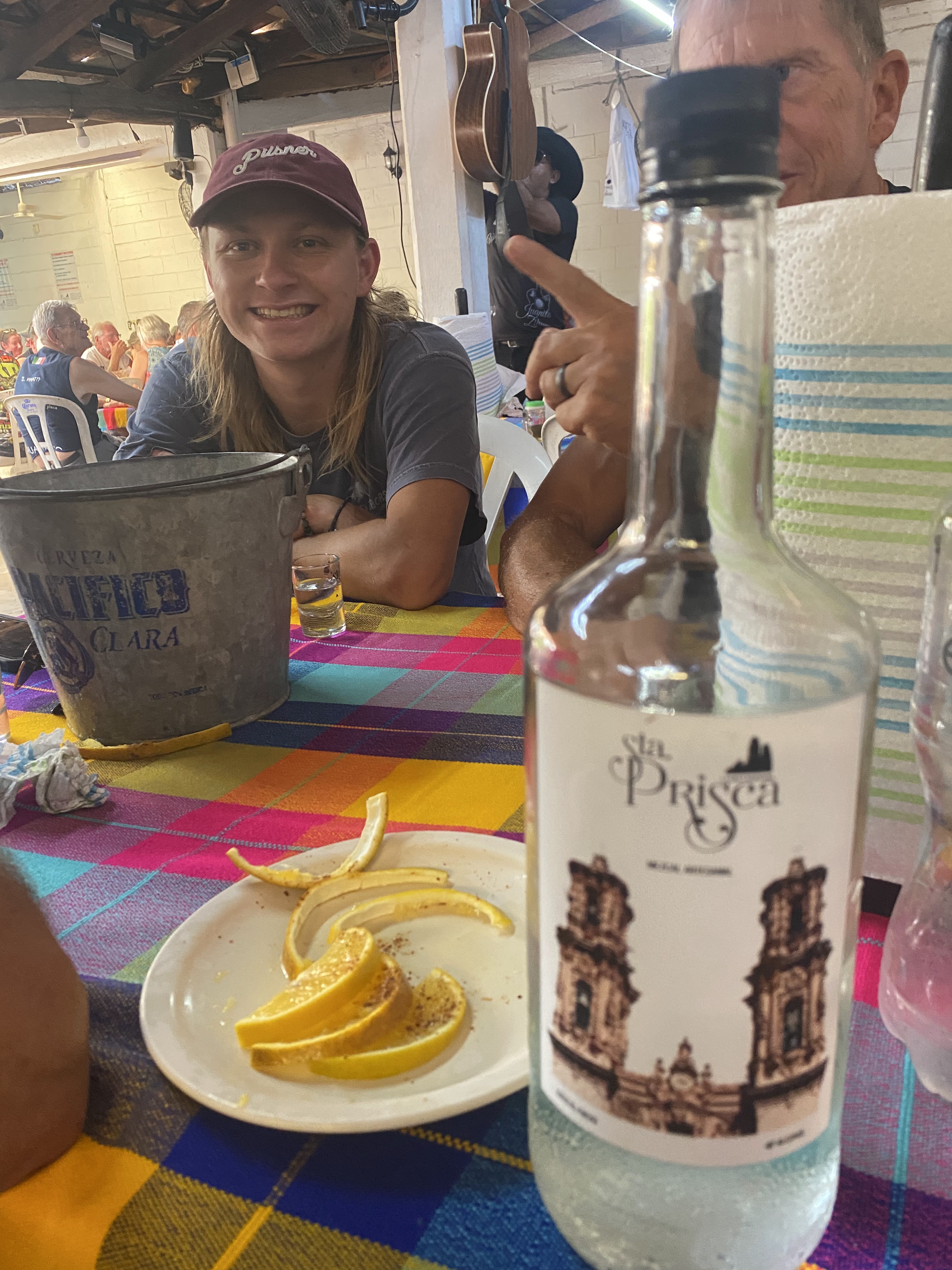 Mid February Sean came down for a couple of months. He brought along his friend Jayden for a few weeks. It was great having them both on the boat. We left Barra and went back to Tennacatita for a few days before starting our trek south to Zihuatinajo. The swell had mellowed so we were able to go up the estuary. A fun dinghy ride with a special treat at the end. Ponchos Ricilla distillery. We had lunch and tastings. The boys had a great time, and so did we.